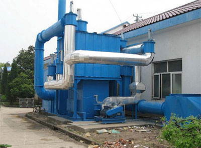 该装置是将浓缩的有机废气引入主要设备。有机废气经内装加热装置从活性炭层中将有机物分离后,通过催化剂的作用分解成水和二氧化碳,同时释放能量,由热交换装置置换能量,用于维护设备自燃的能源。